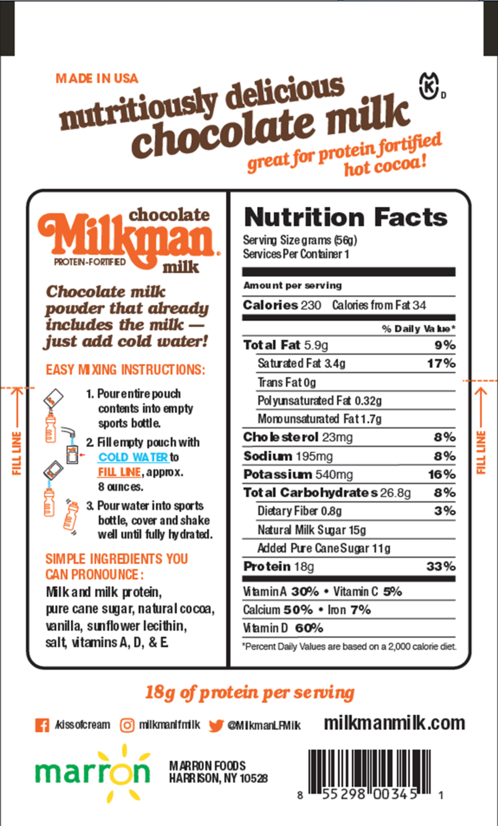Our Milkman Chocolate Milk is nutritiously delicious, creamy and convenient, on-the-go chocolate milk with 18g protein per serving.