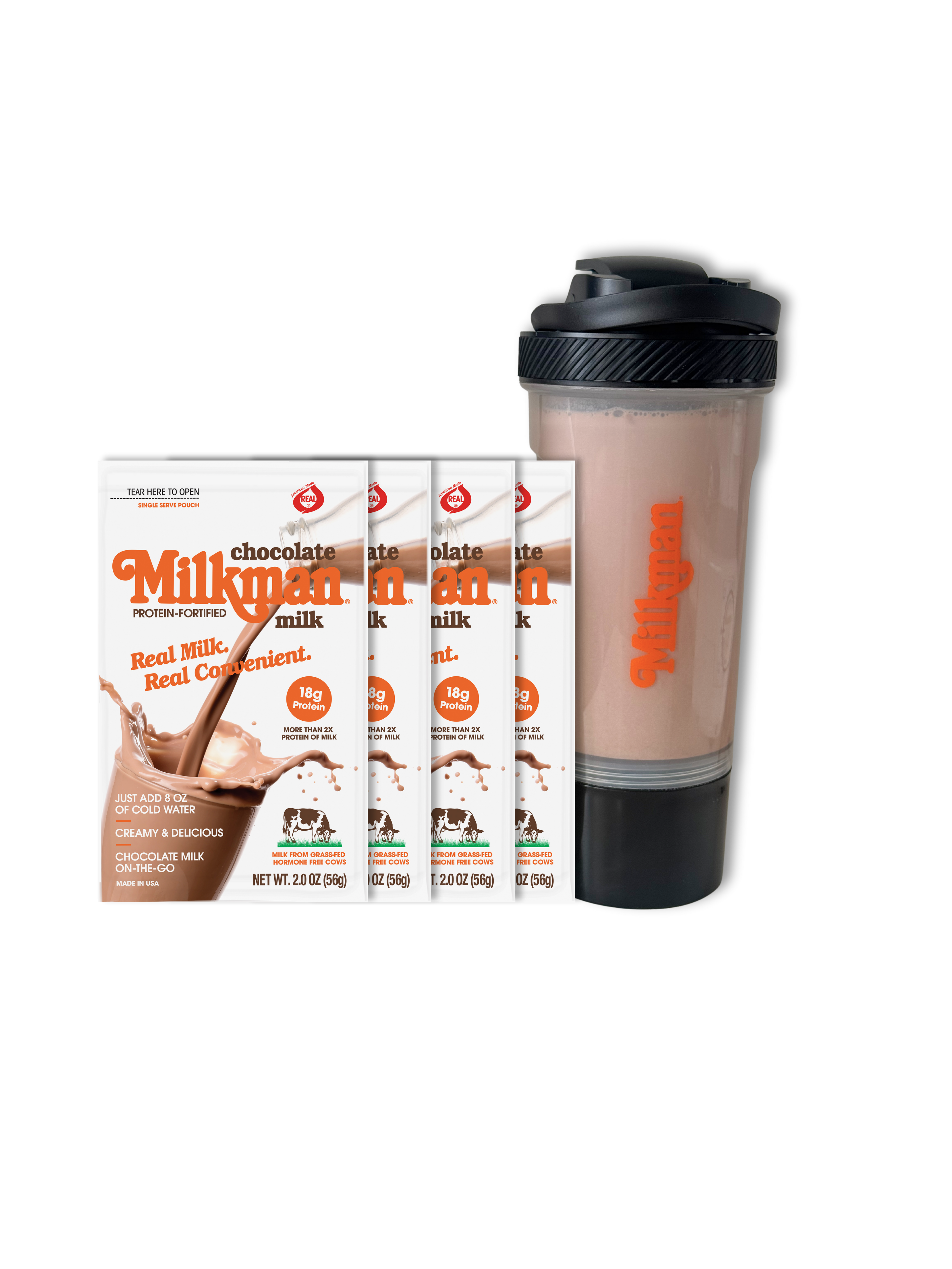 Create an AccountNutritiously delicious, creamy and convenient, on-the-go chocolate milk with 18g protein per serving. The best-tasting, instant chocolate milk with the “kiss of cream.” Milkman chocolate milk mix already includes milk—just add water and enjoy cold chocolate milk, protein smoothies, or hot cocoa and more.